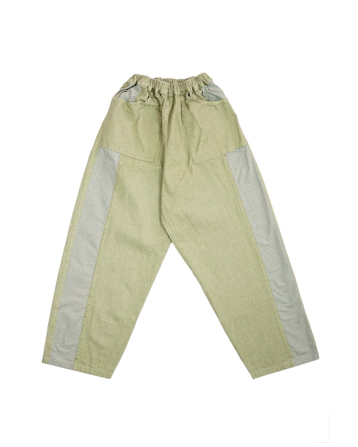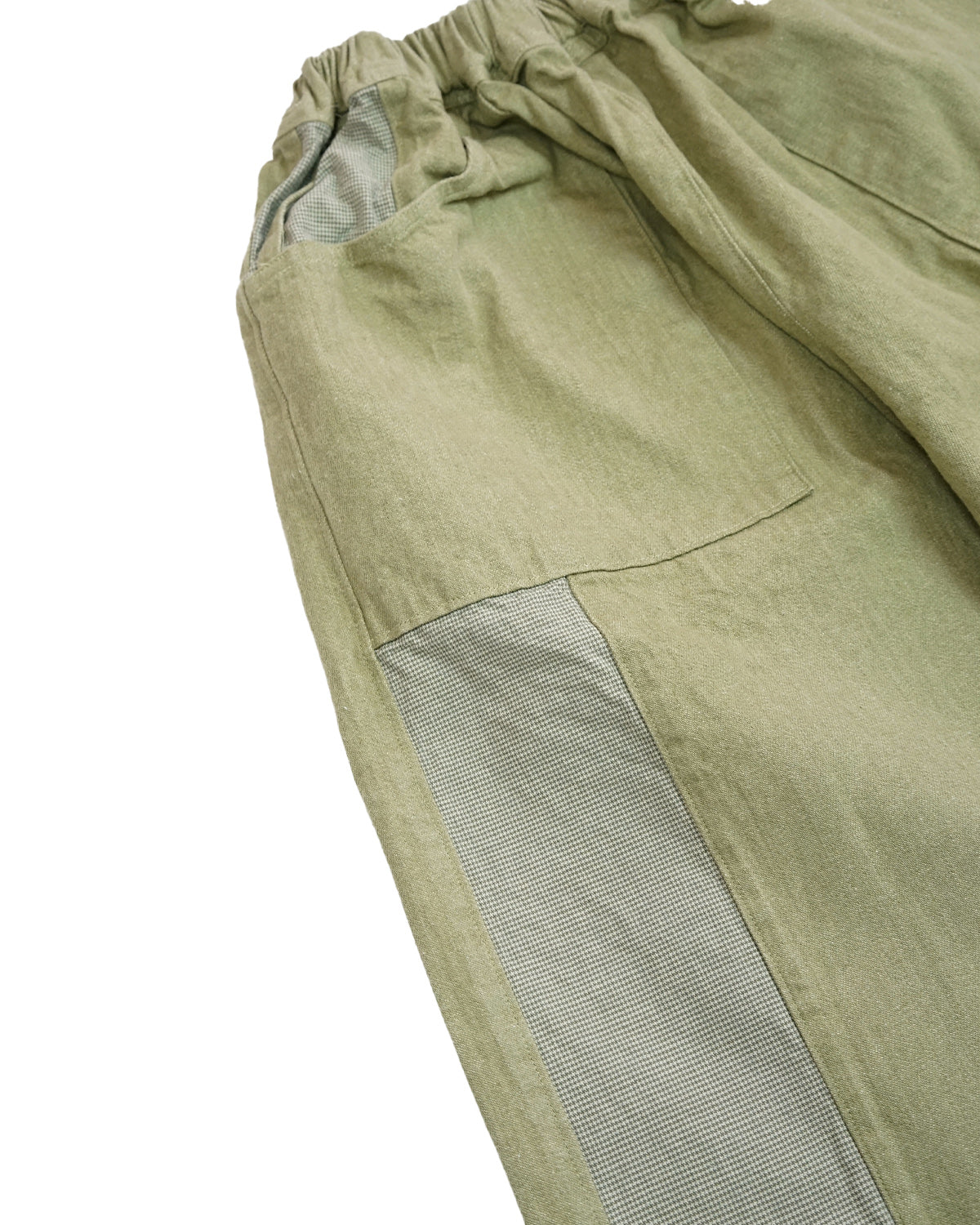 Constructed from 8.5oz Made in USA sage colored denim & 7.5oz Italian cotton houndstooth fabric.