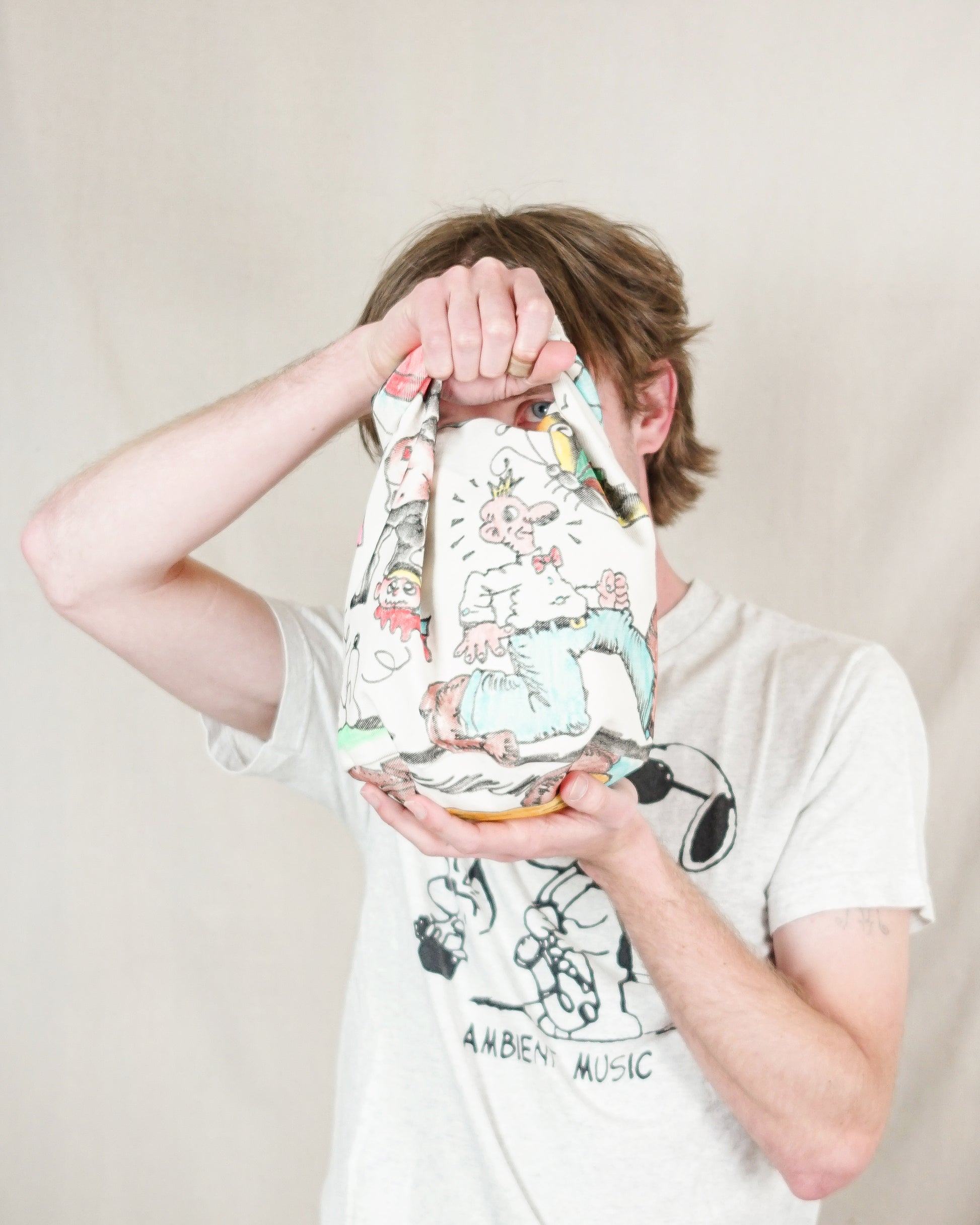 1/1 rolltop handbag sewn by daag with hand drawn treatment by bird like dog