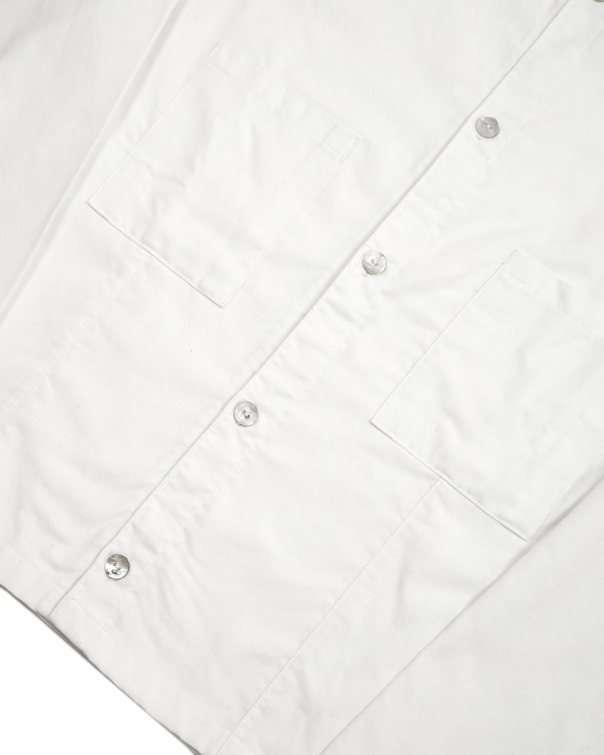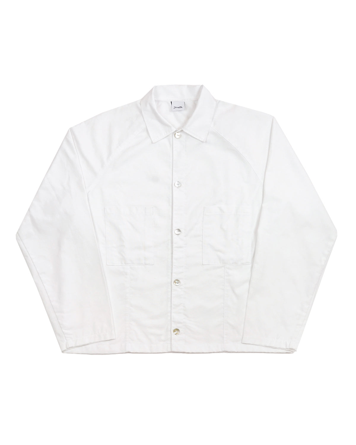 Constructed from 4.5oz made in USA cotton/poly oxford cloth. Features raglan sleeve construction, dual chest pockets, tapered stitch seams from pockets to hem, and mother of pearl buttons.